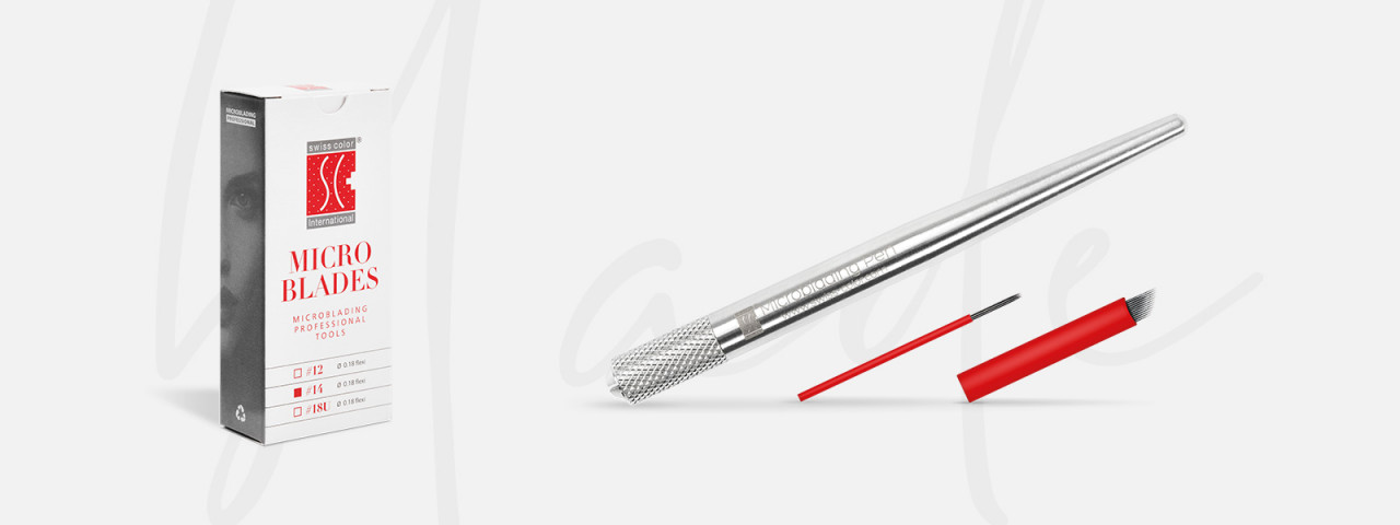 Desde o aparelho descartável até a caneta Pen Pro, confortavelmente ajustada com seu design antideslizante, a Swiss Color® cobre todas as necessidades de microblading. Utilizando nossa variedade de micro-lâminas feitas de aço cirúrgico inoxidável, obtêm-se resultados naturais, tons de sobrancelha delicados e pigmentação discreta.