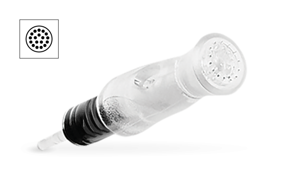 O cartucho de higiene Derma 18-needling Twist é usado para tratamentos anti-envelhecimento do decote, pescoço e área dos olhos, couperose e vitalização capilar. Possui uma cabeça de cartucho móvel na qual estão fixadas 18 agulhas plásticas muito finas. Devido à flexibilidade, até mesmo regiões da pele que são difíceis de alcançar podem ser tratadas de forma uniforme e fácil. Isso simplifica a aplicação nas diferentes áreas. Use com a técnica de carimbo e diamante. Apropriado apenas para o Derma SR handpiece. Compatível com os handpieces Amiea Supreme.