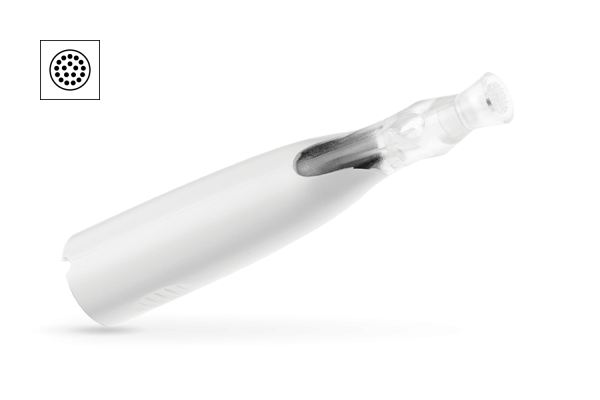 O cartucho de higiene TOP Derma 18-needling é especialmente adequado para o microneedling de rugas, manchas de pigmentação, decote e pescoço. As agulhas estão fixas na cabeça do módulo móvel.