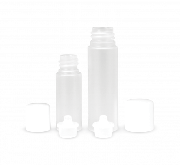 Frascos de mistura de plástico com um inserto de conta-gotas. Disponíveis em 6 ml, 12 ml ou 16 ml. Use o frasco de mistura para misturar os pigmentos.