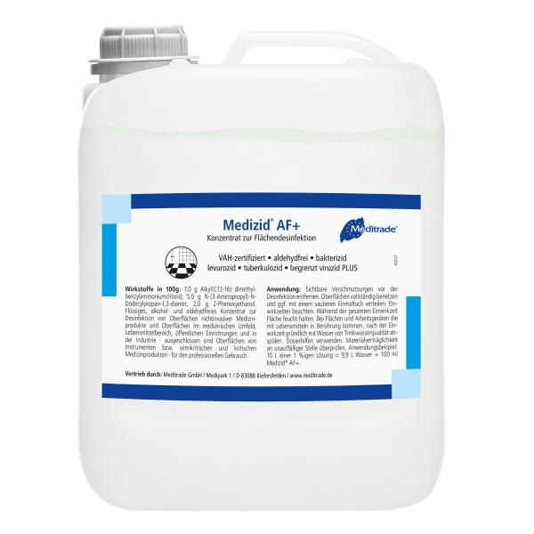 Desinfetante sem aldeído para limpar e desinfetar superfícies de grande área e resistentes a limpeza com panos.